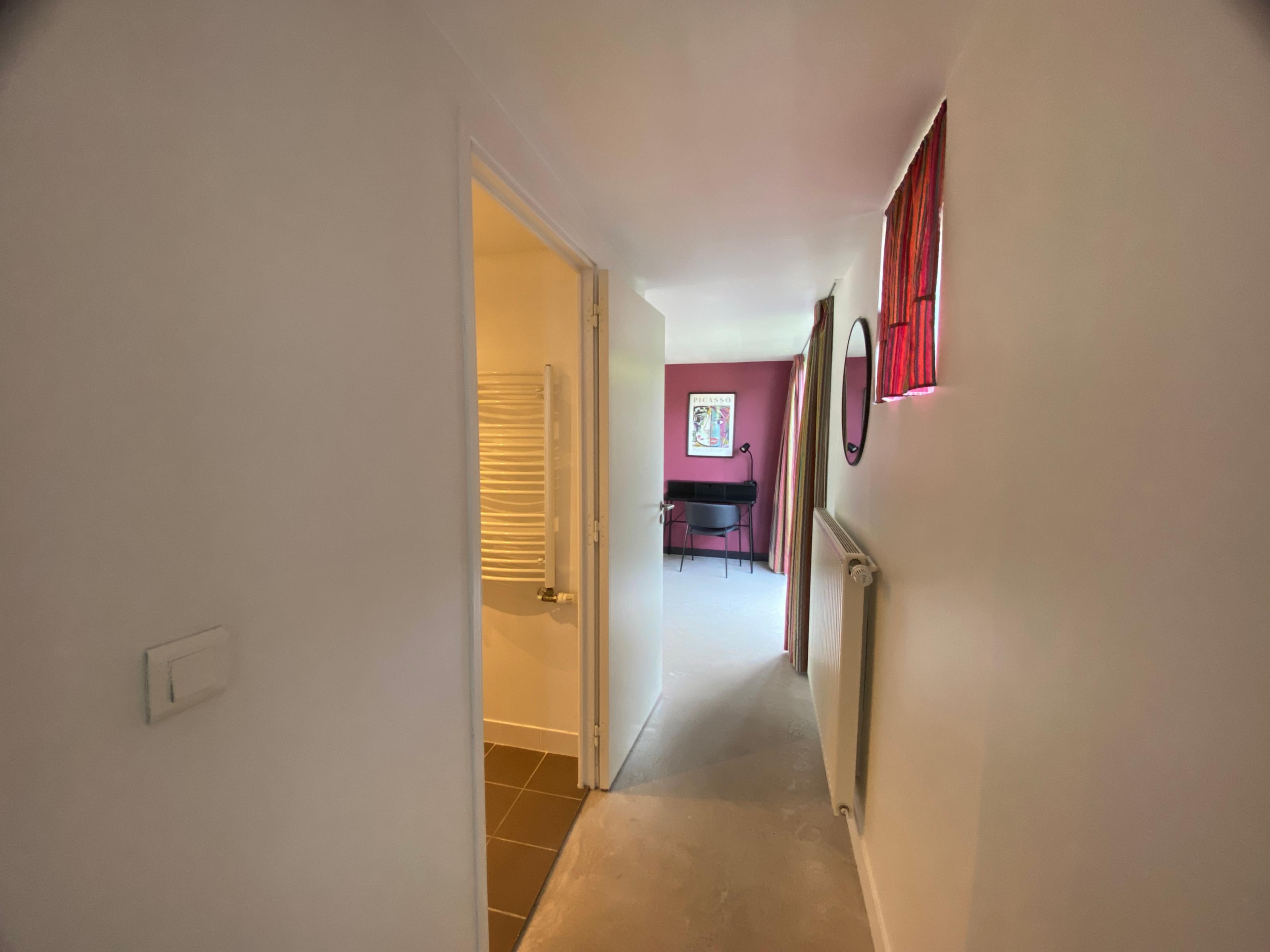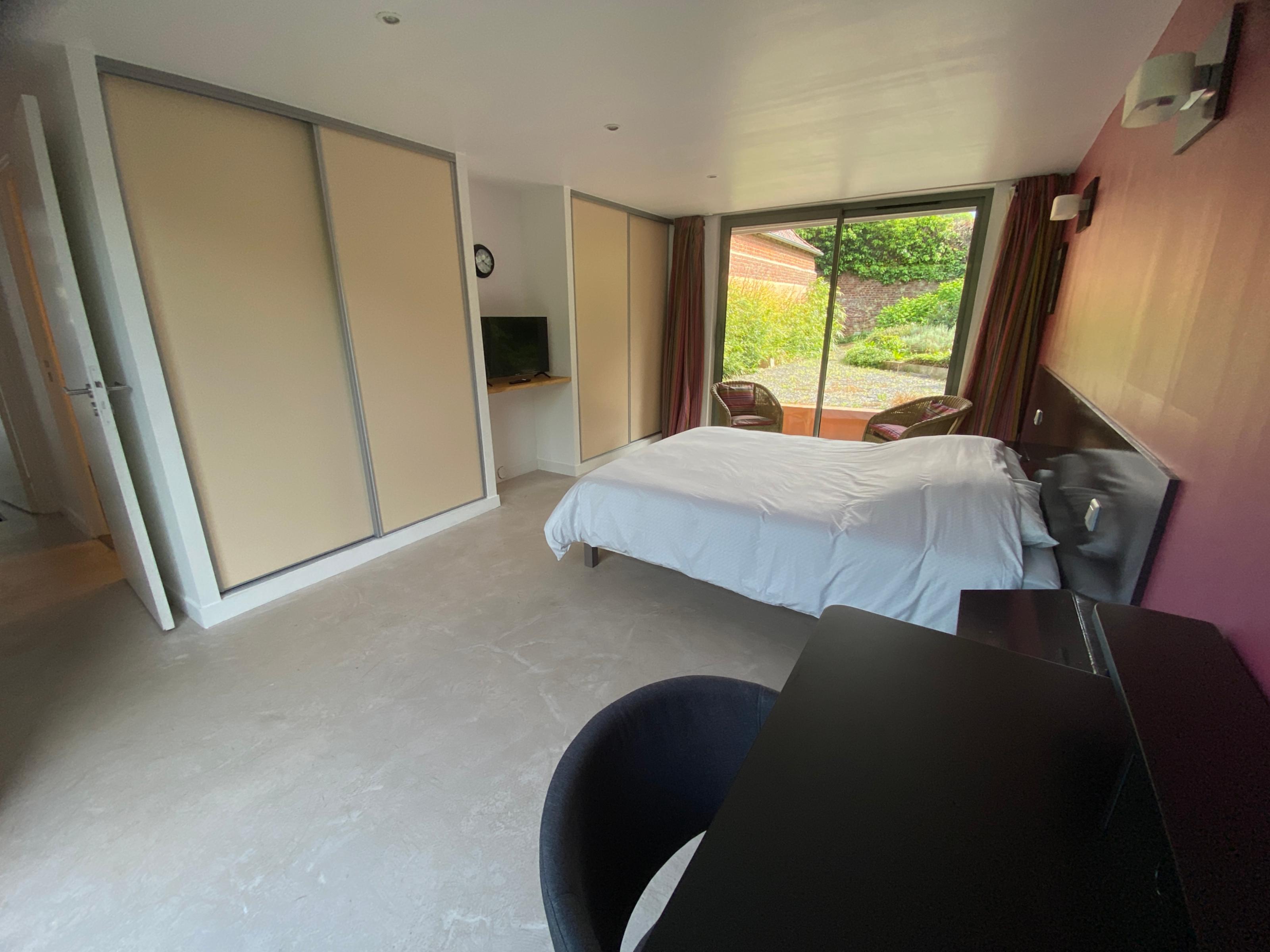 Bedroom with a bed (160 cm), a private bathroom/toilet, a desk and a connected TV. The Picasso room is located on the first floor of the Villa.